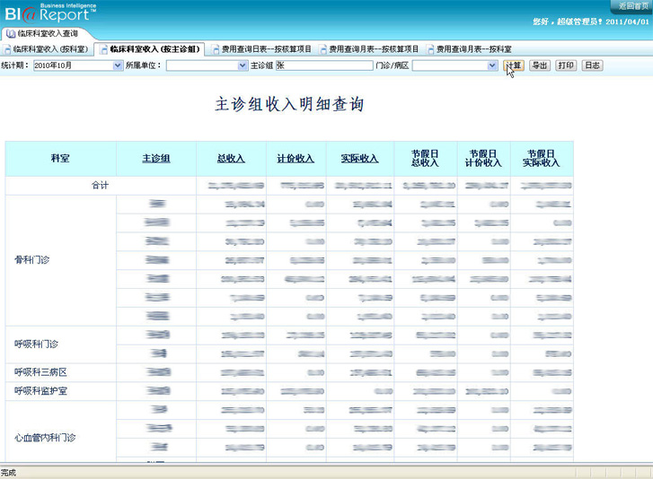 對于收入的統(tǒng)計,主要從科室角度進行,如分科室統(tǒng)計收入情況,統(tǒng)計收入結構情況,并將科室收入按照開單、執(zhí)行、計價、實收等數(shù)據(jù)進行統(tǒng)計。