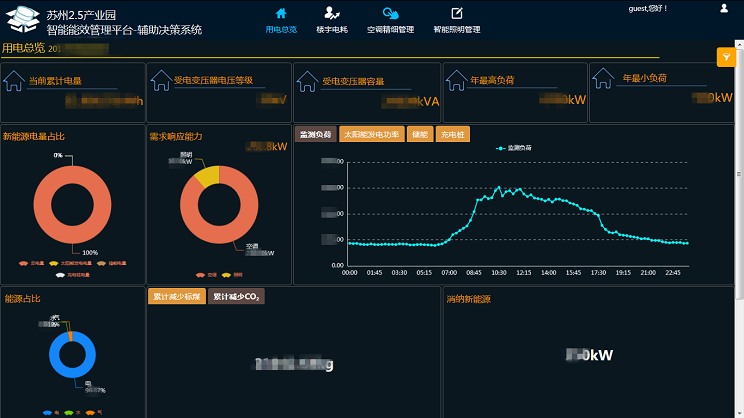 上海合煌能源科技有限公司以專業(yè)優(yōu)質的項目團隊、周到細致的服務為2.5產(chǎn)業(yè)園安裝千余個電能監(jiān)測點,構建蘇州2.5產(chǎn)業(yè)園區(qū)智能用能服務系統(tǒng)、電力需求響應管理平臺、企業(yè)能源管理系統(tǒng)、樓宇空調精細化管理系統(tǒng)及智慧照明系統(tǒng)等,其中針對不同的主題模塊的系統(tǒng),采用億信BI產(chǎn)品進行可視化圖形展現(xiàn),主要內容如下: