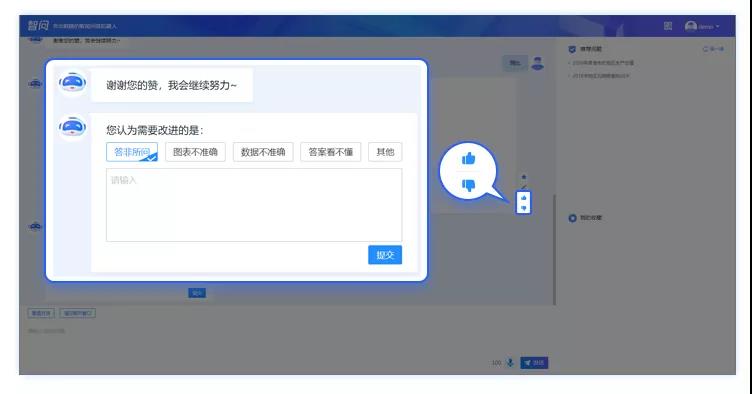 此次智問3.0在展現形態及交互方式上做了重大升級,由原來2.0版本一問一答式的搜索框式交互,轉變為人機聊天式的交互方式,用戶可以通過輸入文字或通過語音進行提問 ,快速獲得正確的分析結果,極大降低用戶的數據分析門檻,徹底變革傳統BI的數據分析方式。 此版本融合了業務規則和深度學習模型的多輪對話管理策略,提高了多輪對話流暢度,用戶能以某個方向延展出多個問題,步步追問得到最佳的分析結果。 智問可支持PC、手機、大屏等多種數據終端,其中手機端還可支持APP和微信等應用方式,且支持移動端圖表橫屏展示。用戶可隨時隨地通過移動設備進行數據分析,具有全天候的場景覆蓋能力。 更明亮的雙眸:精準定位關鍵信息 智問3.0依托自然語言處理、機器學習、人工智能等AI技術,使其擁有了一雙“明亮且毒辣”眼眸,可快準狠地搞清用戶提問意圖,從中提取出關鍵指標和維度;另外,它還可根據用戶所問進行關鍵詞推薦、熱門問題推薦、個性化推薦、相關問題推薦等,全方位覆蓋用戶的搜索意圖。 如果用戶不知道維度和指標有哪些,還可直接詢問“有什么維度呀”,“有什么指標呀”等。點擊“換一換”按鈕也能切換查看不同的指標或維度,十分靈活方便哦! 更善言的嘴巴:豐富圖樣會“表”達 智問利用機器學習的方式學習人類做圖做表經驗,并使用完全自主研發的智能計算和智能圖形引擎,在充分語義理解的基礎上,基于內置的圖形推薦算法選擇適合數據的可視化展現形式,圖表類型豐富多樣可滿足用戶的各類需求。 無需多言,豐富又準確的圖表就好似能說話一般,智問能把你想查看的數據用最合適的圖表展現出來,比如想看趨勢,他會展示線狀圖;想要看占比情況,他會展示餅圖;想看全國所有省份的某個指標對比,他會自動展示地圖。如若不滿意,用戶還能自己輸入需要轉換的圖表類型進行轉換。 更聰明的大腦:智能學習知你所思 新版本中,智問基于自然語言處理技術(包括文本分詞、語義理解、語義消歧等)針對用戶提出的問題,能夠智能化地實現自動消歧或引導用戶手動消歧,采用了意圖識別和槽位填充的聯合深度學習模型,大大提高了準召率。 另外,智問具備了更加完善的用戶行為分析、知識沉淀等自動化積累和學習的能力,能夠根據用戶的使用不斷地學習業務、了解業務核心、增加業務知識,并將所學知識反哺給用戶,達到所有用戶都能夠共享知識的良好效果。 除此之外,億信ABI智問模塊還更新了許多特色功能,如:短句追問、圖表類型切換、圖表再次編輯、圖表收藏、用戶反饋、口語化支持、同義詞配置等等。 邀您體驗 有了上述的介紹,一個有血有肉的智能機器人是否已浮現在你眼前呢?想要躍躍欲試了嗎?為了更好地服務大家,并在實戰中不斷成長,智問開啟了demo試用體驗,若有展示不準確的圖表,還請各位大大們進行意見反饋哦。 系統后臺會記錄大家的意見,不斷訓練模型,促使智問持續進步!體驗demo送好禮活動正在火熱進行中,期待您的意見和反饋哦~ 體驗億信ABI智問demo