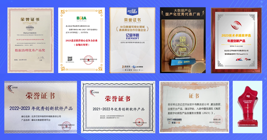 不僅榮獲2022-2023年度優秀創新軟件產品、大數據產業國產化優秀代表廠商、BI及數據可視化領域最具商業合作價值企業等9項大獎,并在IDC、中國信通院、艾瑞咨詢、互聯網周刊、億歐網、沙丘社區等權威機構發布的發布的10大產業圖譜榜上有名、7大行業榜單名列前茅。